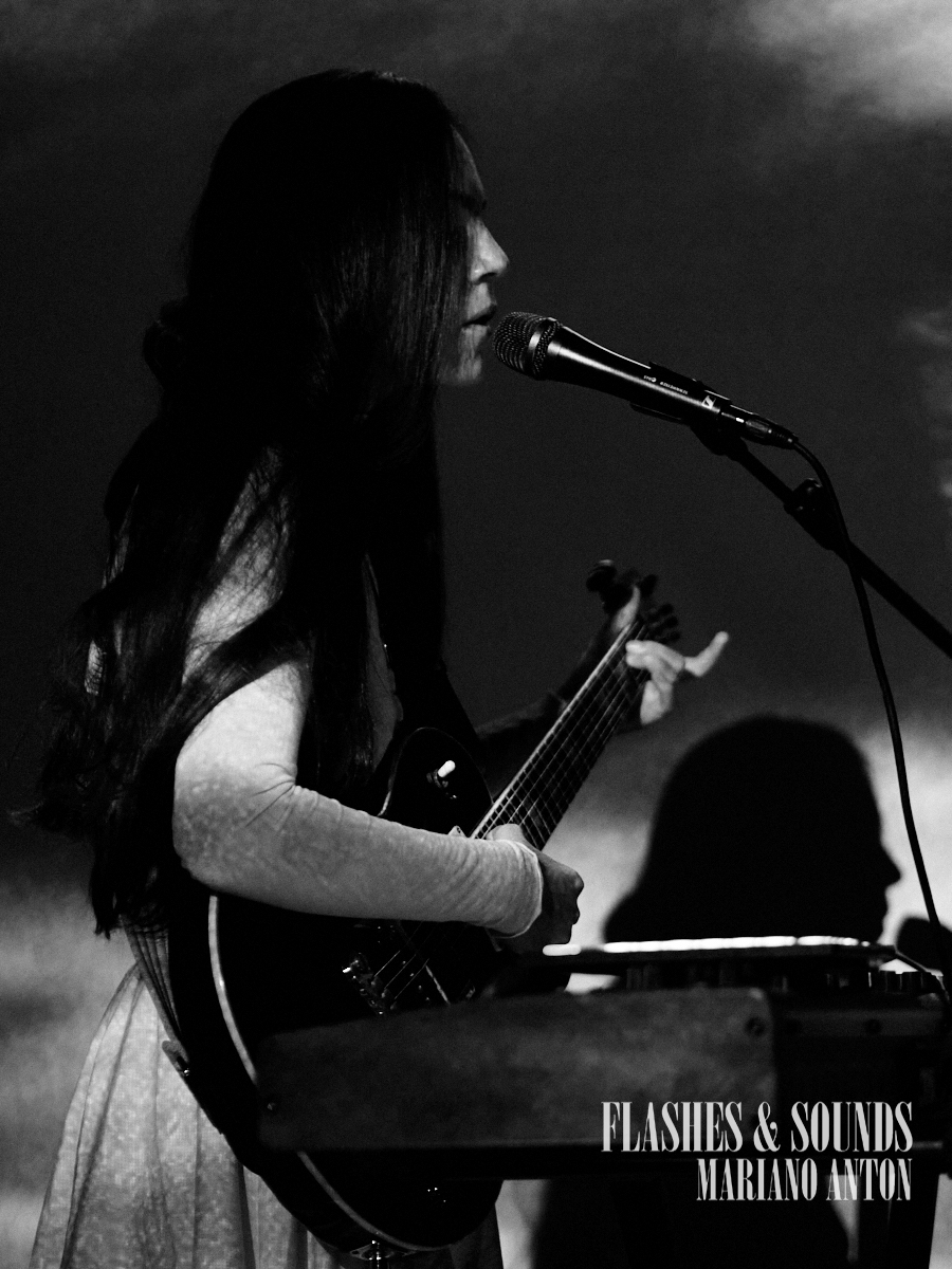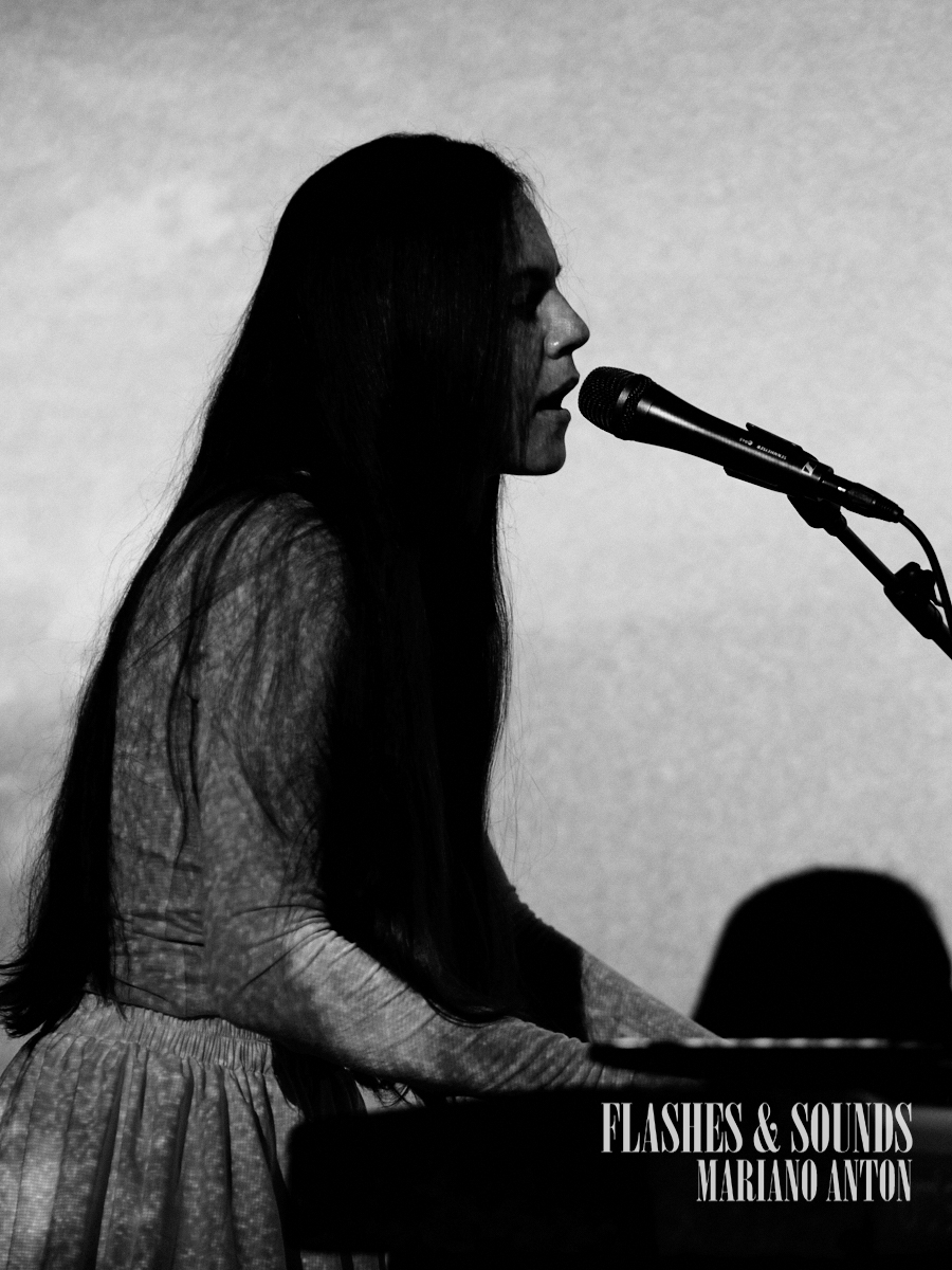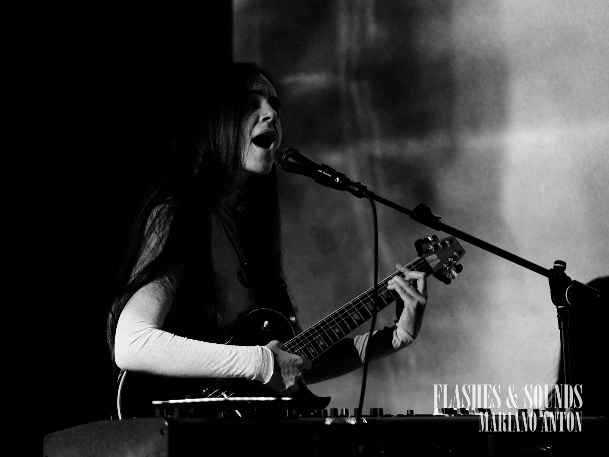 La música de Sara es una mezcla profunda de electrónica, pop y folk. Suena tan sutil y envolvente que, en algún momento, dejas de ser oyente. Literalmente te hundes en ese sonido y te encuentras en otro mundo: en su mundo. En la sala se sentía con claridad: el público se quedaba inmóvil en cada composición, como si temiera romper la atmósfera frágil que ella iba creando.