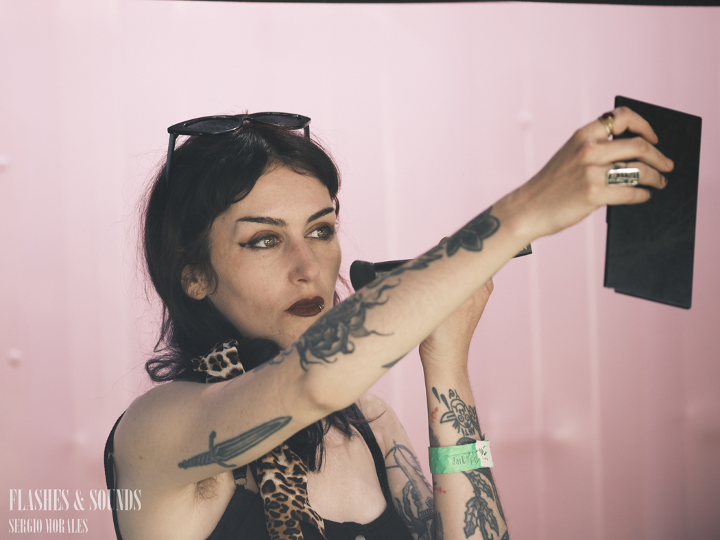 Ya acercandonos a las 7 empezaron su actuación The March Violets, liderados por una Rosie Garland en plena forma pero de los que no pudimos disfrutar más que unos pocos temas ya que el retraso de casi hora y media en ese momentos hizo que se solapara con Bestial Mouths, uno de nuestros must, y que gracias al carisma y la energia de Lynette lo pudimos disfrutar a pesar de sufrir los primeros problemas de sonida del día, y colandose el sonido del escenario principal.