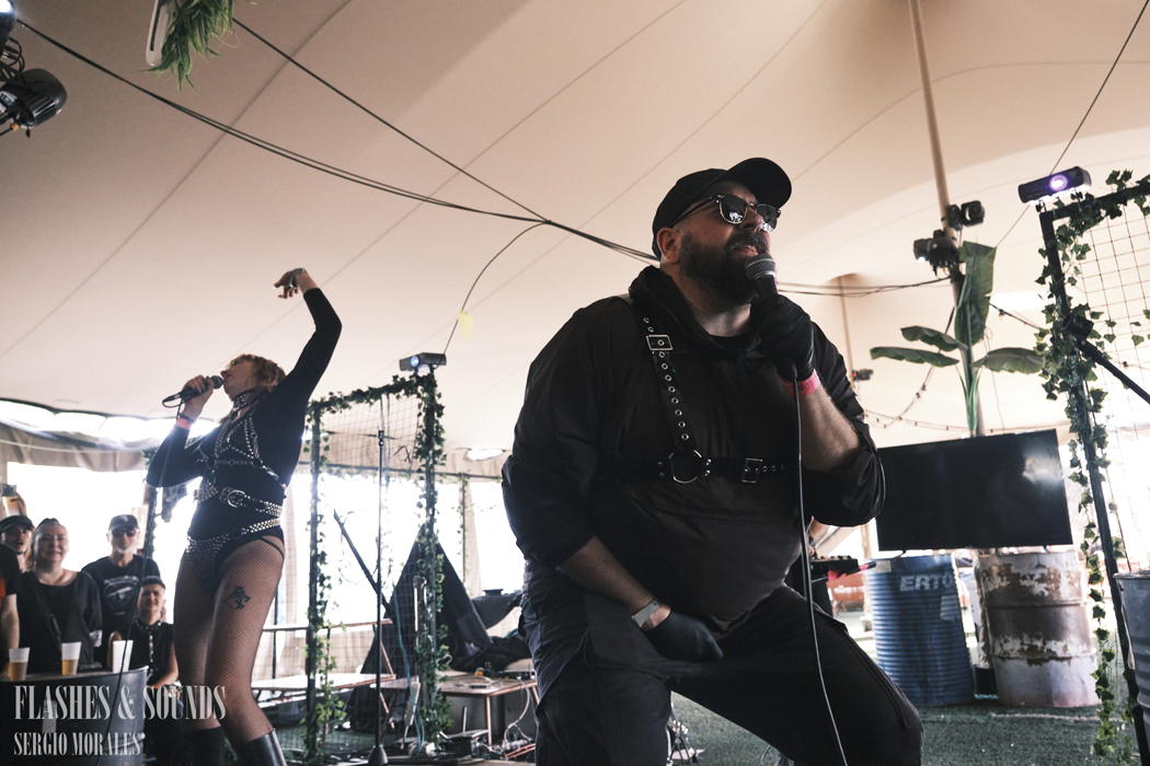 Con un retraso ya muy evidente, y con otro cambio largo que ya esperabamos, nos acercamos a la carpa para llegar al final del concierto de Spammerheads. El duo valenciano la estaba liando muy gorda con el cantante tirado por el suelo, simulando espasmos de muerte, y entre el publico. Sin duda un descubrimiento que vamos a seguir.