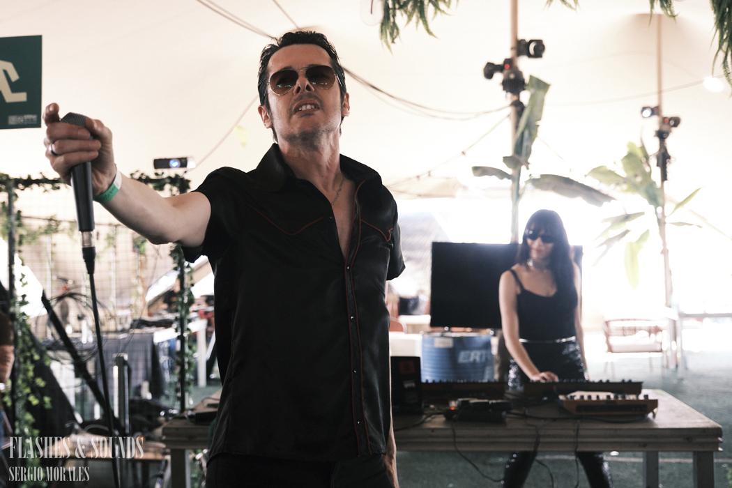 Ya acercandonos a las 7 empezaron su actuación The March Violets, liderados por una Rosie Garland en plena forma pero de los que no pudimos disfrutar más que unos pocos temas ya que el retraso de casi hora y media en ese momentos hizo que se solapara con Bestial Mouths, uno de nuestros must, y que gracias al carisma y la energia de Lynette lo pudimos disfrutar a pesar de sufrir los primeros problemas de sonida del día, y colandose el sonido del escenario principal.